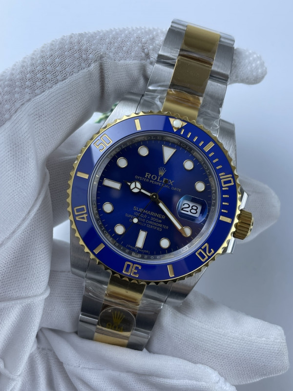 (준비완료/특급배송)NO.2074/V6공장 롤렉스 서브마리너 청콤 블루 콤비 옐로우골드 3135