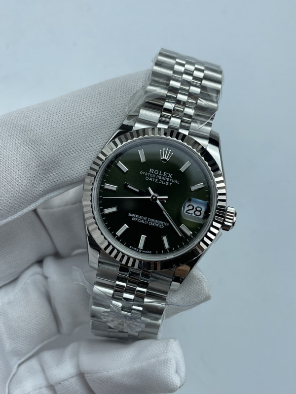 (준비완료/특급배송)NO.3508/롤렉스 데이저스트 31mm 여성용 시계 그린 바인덱스 다이얼 플루티드 베젤 쥬빌레 밴드 (QP공장)